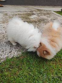 Vendo un cucciolino di volpino di pomerania mini Toy bianco puro età 75 giorni disponibile per andare in una nuova famiglia, molto affettuoso e coccolone cresciuto in ambiente familiare, abituato alla traversina,genitori visibili, verrà consegnato con libretto sanitario, vaccino, microchip e trattamento vermifugo effettuato