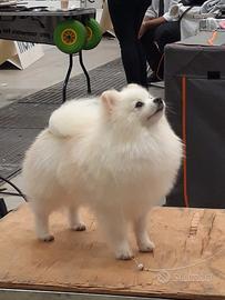 Sono Niksend Olimp Cream Parti (aka Cesaretto), spitz tedesco piccolo , 24,5 cm al garrese, maschio di 4 anni, particolor (bianco&crema) sto cercando una fidanzata della stessa razza.
