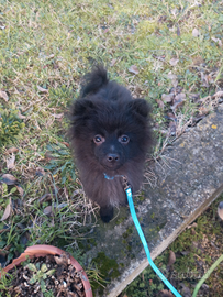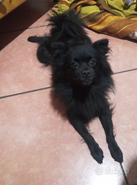 Cucciolo nero di volpino italiano Maschio so cede a 4 mesi completo di tutto libretto vaccini e chip i genitori in foto solo madre visibile.
