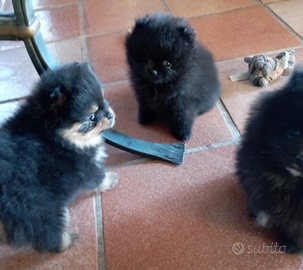 Spitz tedesco volpino di Pomerania 3cuccioli femmine maschio,nati il 20/10/2025 in allevamento amatoriale seguendo le specifiche norme d'igiene,si rilasciano dal 13/12/2025 con libretto sanitario 1vaccino, sverminazioni, certificato buona salute.Genitori di proprietà, peso da adulti dei cuccioli kg.2,700.Per contatto sul sito e whatsapp 3401556106. Foto attuali.