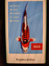 Disponibile bellissima koi tosai sana e vivace, allevata con cura in acqua pulita e alimentazione di qualità.