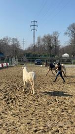 Il suo puledro Mango, 2 mesi, è già super bravo: si lascia spazzolare, coccolare e gestire con serenità. È curioso, equilibrato e molto affettuoso.