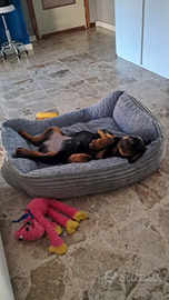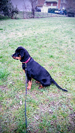 Bellissima cucciola di Rottweiler, 4 mesi, vaccini completati, microchip, sverminazione completa. Pedigree. Educazione di base effettuata con comandi "vieni" "seduta" "prendi" "lascia". Abituata al guinzaglio, bisogni all'esterno e traversina. Abituata al kennel. Si cede a veri amanti animali con corredo incluso (cuccia, guinzaglio e accessori).
