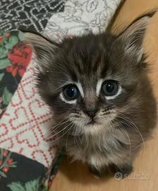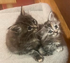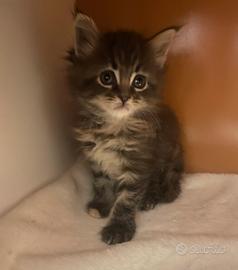 Splendida Maine coon, nate il 20 dicembre da genitori di mia proprietà, , potra' essere affidate dopo i due mesi compiuti, a termine svezzamento. Disponibile , ultima gattina , nella colorazione brawn Tortie tabby . Le piccola, nata sarà cresciuta in ambiente familiare , a stretto contatto con adulti e bambini, sviluppando un rapporto sano e naturale. verra' svezzata con cibo di alta qualità e sarà abituata all'uso della lettiera. Alla nuova famiglia sarà consegnato il libretto sanitario che ne attesta la buona salute, il vaccino e la doppia sverminazione ed il kit cucciolo .