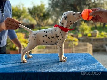 Sono nati meravigliosi cuccioli di Dalmata, allevati con amore, passione e la massima attenzione per la loro salute e il loro benessere. Genitori entrambi esenti da patologie genetiche, accuratamente selezionati. Cuccioli ceduti dopo i 60 giorni di vita nel pieno rispetto del loro corretto sviluppo. Verranno consegnati con: o Primo ciclo di vaccinazioni o Microchip o Ciclo completo di sverminazione o Libretto sanitario o Certificato di buona salute veterinario o Pedigree I piccoli crescono in ambiente familiare, seguiti con tutte le cure e le accortezze possibili, abituati al contatto umano per garantire un carattere equilibrato e socievole. Per informazioni e per conoscere questi splendidi cuccioli, contattateci in privato. Solo persone realmente interessate e amanti della razza. Recapito 3804707096