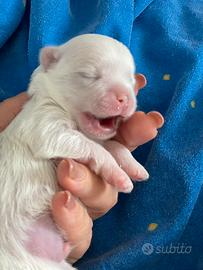 Cuccioli di razza Maltese con Pedigree Enci di Alta Genealogia. Si consegnano dopo i 60 giorni. Si garantisce il ciclo di sverminazioni completo e la prima vaccinazione. Visita veterinaria con libretto vaccinale e iscrizione al Registro Anagrafe Canina Nazionale. La mamma è figlia di un campione internazionale .