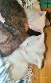 I CUCCIOLI SONO NATI IL 25/01/2026 DISPONIBILI 2 MASCHI TOTAL WHITE ENTRAMBI I GENITORI SONO DI MIA PROPRIETÀ A ENTRAMBI SONO STATI ESEGUITI I PRINCIPALI TEST FIV-FELV ECOCARDICO E GIARDIA TUTTI NEGATIVI I MICINI VERRANNO CEDUTI A RECUPERO SPESE CON DOPPIA SVERMINAZIONE (NEMEX) PRIMO VACCINO E CON LIBRETTO SANITARIO SARANNO ABITUATI AL TIRAGRAFFI E ALLA LETTIERA CHIUSA SARANNO DISPONIBILI VERSO LA SECONDA SETTIMANA DI APRILE DOPO PASQUA SONO VISIBILI SIA I CUCCIOLI CHE I GENITORI SU APPUNTAMENTO IL RECUPERO SPESE RICHIESTO E DI €480 SOLO VERAMENTE INTERESSATI NO