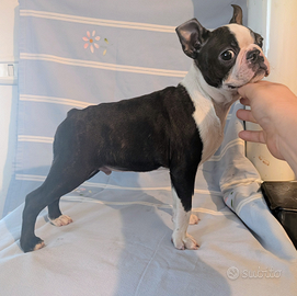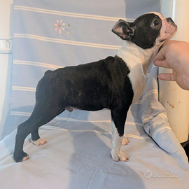 Splendido cucciolo di boston terrier, maschio. Nato da un accoppiamento molto interessante, pedigree di altissima genealogia, papà campione italiano di bellezza, riproduttore selezionato enci. Genitori testati malattie tipiche della razza. Subito disponibile, con vaccinazioni, svermato, microchippato e con pedigree ENCI. FOTO REALI DEL CUCCIOLO DISPONIBILE.