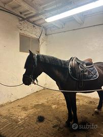 In vendita promettente pony di 4 anni, altezza 142 cm al garrese (D). Un soggetto sano, equilibrato e con un ottimo carattere. o Addestramento: Domato alle tre andature, si muove con eleganza e precisione. Già avviato al salto ostacoli, dimostrando ottimi mezzi e buona tecnica. o Carattere: Bravissimo nella gestione da terra e nel lavoro alla corda. Sereno con il maniscalco e durante la tosatura. o Salute: Soggetto sano, privo di vizi redibitori o tic. o Posizione: Marche. Un'ottima opportunità per chi cerca un giovane talento da far crescere o un pony affidabile per il futuro. Per video e maggiori informazioni, non esitate a contattarmi in privato.