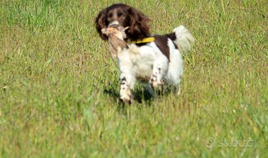 Springer Spaniel Inglese Femmina di 20 mesi addestrata alla cerca nei terreni più fitti e spinosi. Conosce tutti selvatici che recupera e riporta perfettamente alla mano. Riporta la piccola migratoria. Riporta dall'acqua.