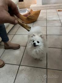 Disponibile per accoppiamento bellissimo stalloncino di Spitz di Pomerania nano con ottimo Pedigree. colore Total White. Sì divide cucciolata