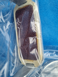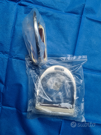 Staffe inglesi in alluminio, misura 12 cm, complete di pedane in gomma color ruggine antiscivolo. Mai usate, ancora in imballaggio originale.