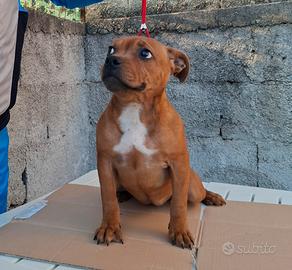 Allev.. dispone di una Bellissima staffina di altissima genealogia, a 4 mesi linea di sangue Earthquake x skilful... viene consegnata con 3 vaccini microchip e pedigree possibile spedire in tutta italia per info 3381669758 staffordshire bull terrier ,staffy,staffie