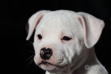 Disponibile splendida cucciola di Staffordshire Bull Terrier Total White, nata nell'ambito del programma di selezione del nostro allevamento ufficialmente riconosciuto ENCI e FCI. La piccola è pronta per la consegna.