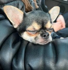 Disponibile per accoppiamento Chihuahua maschio di 2 anni a pelo corto di colore nero con sfumature, peso circa 2 kg e con PEDIGREE ENCI, già abituato alle monte.