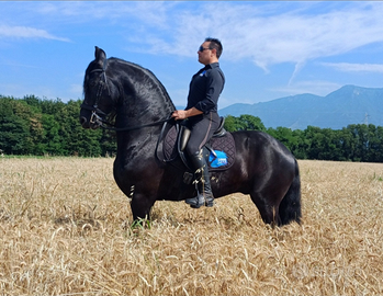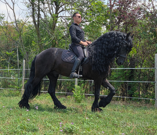 Meraviglioso cavallo frisone, altezza 170 al garrese, super addestrato in alta scuola,dressage, lavora anche in libertà, in cintura , attaccato anche pariglia, tiro a 4,tandem etc etc.