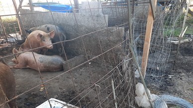 Vendo suino , razza incroccio tra Duroc e Large White ( grande bianco), pesso 200/220 kg, cresciuto bio con farinacio ,mais, frutta e verdura , a quasi 1 anno