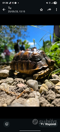 Note importanti: La tartaruga non va in letargo e necessita di uno spazio adeguato (molto grande in futuro) e di un terrario riscaldato per l'inverno. Vendo solo a persone consapevoli e amanti degli animali