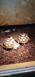 Cedo due sulcata baby ,con documenti CITES,attive ed in piena salute,con terrario allestito. Lampada Arcadia UVB 12% Lampada SPOT 70W(riscaldante) Lampada in ceramica riscaldante(notturna/senza luce). Substrato lato spot (caldo) compozoo, Lato fresco/umido con fibra di cocco Con sonda che rileva umidità , e temperatura esterna ed interna. Più una balla di fieno orchard grass ed in barattolo di calcio.