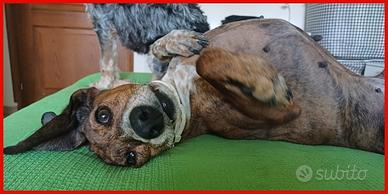 Quando abbiamo incontrato SVITOL il nostro cuore si è spezzato. Segugietta tigrata di taglia mediopiccola, circa 5 anni. Rinchiusa in un box di canile zoppicante e dolorante, ma comunque felice di incontrarci. Un dolore che non si può neanche immaginare. Quel giorno le facemmo una promessa, ben oltre le nostre possibilità economiche. Volevamo per lei una vita dignitosa e felice. Cure, amore e attenzioni. La nostra Svitol aveva due zampe rotte, con fratture scomposte e mai guarite. Si trascinava nel suo dolore. Aveva un'ernia addominale enorme. Per non parlare della situazione denti. È passato un'anno e Svitol fino ad ora ha sostenuto il primo degli interventi ortopedici che le permetteranno di tornare un cane sano. Ha subito inoltre un intervento d'urgenza all'ernia addominale, poiché improvvisamente la scorsa estate ha subito la fuoriuscita di un pezzo di intestino. Siamo corsi dal veterinario e siamo intervenuti. La sua ostinata voglia di vivere l'ha salvata, perchè Svitol è davvero una forza della natura. Si è ripresa e ora è al sicuro in stallo. Si gode il prato, le coccole, la cuccia. È una cagnolina attiva ed energica nonostante debba ancora affrontare degli interventi ortopedici. Ama cacciare lucertole ed è dolcissima con gli umani. Va inoltre d'accordo con i suoi simili. È un cane fantastico nonostante la vita con lei non sia stata clemente. E' sterilizzata. Ad oggi Svitol è tornata in forze e sarebbe pronta per effettuare il secondo degli interventi ortopedici per le sue zampe rotte ma le nostre risorse sono allo stremo. Stiamo cercando fondi. AIUTATECI!