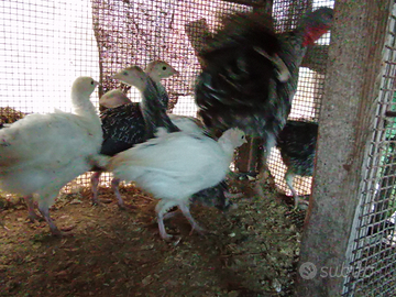 Salve disponibili tacchini di due mesi nati da cova naturale a 8€ cadauno Germani reali maschi di un anno 18€ cadauno Galline marrans a 30€ cadauna Pulcinotti bresse a 8€ c'è adauno No spedizione