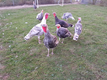 Tacchino nostrano adulto taglia leggera di circa 7/8kg i maschi 4/5 kg le femmine. Pronti per Natale o capodanno. Color grigio bianco e nero.