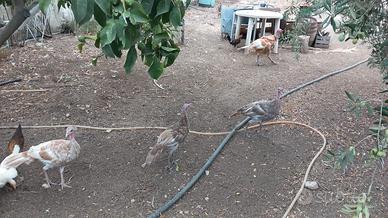 vendo tacchini di circa un anno razza media leggera rosso di borbone originale puri nati da cova naturale. ottime chioccie. euro 50 . disponibili uova fecondate e pulcini di varie età. per info 3356924517.