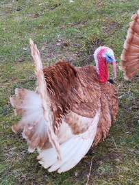 Tacchino maschio Rosso di Borbone, adulto, in ottima salute. Allevato all'aperto, ben sviluppato e mansueto. Visibile su appuntamento. Contatto: 335 6568492 (anche WhatsApp)