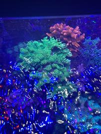 Descrizione: Corallo SPS tra i più iconici e spettacolari, noto per i suoi rami sottili e densi ricoperti da polipi colorati che si muovono con la corrente.