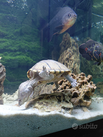 E una tartariga che passa la sua vita solo in acqua dolce