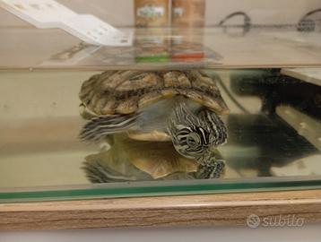 Tartaruga d'acqua con me da circa un anno, la tartarughiera ha circa 6 mesi, e' in vetro con filtro, riscaldatore e lampada UV + mangime