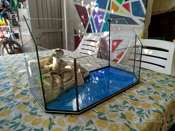 Tartarugario di vetro per tartarughe sia di terra che acqua o altri animali praticamente nuovo. Misure 50x28x30.