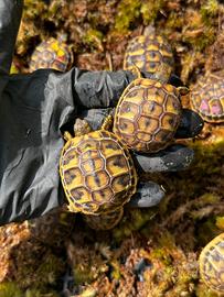 Testudo hermanni H. , ceppo siciliano delle madonie , cb (nate e cresciute da noi) allevate a terra con erbe di campo e integratori professionali. Letarghi sempre fatti dal primo anno di vita, visite veterinarie ripetute periodicamente.