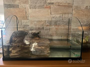 Vendo tartarughiera con sasso integrato e pompa per ricircolo dell'acqua e regalo 3 tartarughe di 10 anni e 6 anni