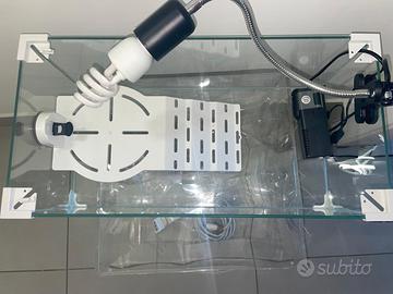 Teca/Acquario per tartarughe d'acqua completo di accessori pompa ricircolo acqua filtro luce isola perfettamente funzionante Misure Lunghezza 50 x Altezza 30 x Profondità 25