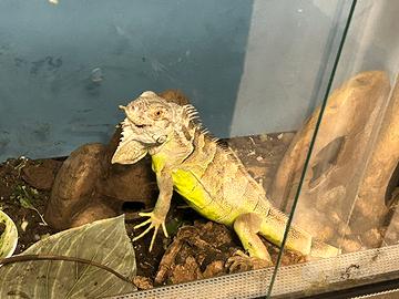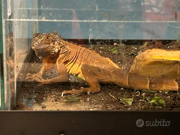Vendo teca in vetro per rettili completa di due iguane: - 1 maschio verde adulto lungo circa 1 metro - 1 femmina arancione più giovane lunga circa 40-50 cm La teca misura circa 120 cm lunghezza, 35 cm profondità, 50 cm altezza ed è completa di lampada riscaldante, rifugi e accessori base. Le iguane sono state acquistate in negozio e dispongono dei documenti. Sono animali sani e abituati alla vita in teca. Vendita per mancanza di tempo/spazio. Solo ritiro a mano a Torino. Per ulteriori informazioni o foto aggiuntive, contattami senza problemi.