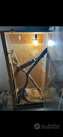 Vendo teca usata spaziosa ideale per rettili di grandi dimensioni. Struttura solida con copertura in legno e apertura frontale in plexiglas. Caratteristiche: - Già predisposta con 2 attacchi per lampade Incluse lampade nuove: UVB e riscaldante - Prese per la corrente già installate - Buona ventilazione e facile accesso Dimensioni: 140 x 65 cm Prezzo trattabile.