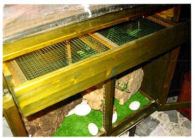 Teca in legno marino trattato P50xH80xL90 cm, lavorata a mano ben rifinita e si presenta come nuova di un bel verde, la foto non rende! Chiusura a chiave e prese d'aria laterali e posteriore, accessoriata con centralina di accensione per tubi fluorescenti Arcadia 36/38 watt, con interruttore e n.2 prese aggiuntive.