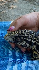 Abituato al contatto umano, non ha mai provato a mordere, mangia il cibo dalla mano (anche dalle pinze lo accetta)