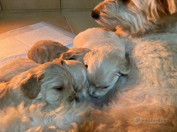 Bellissimi cuccioli nati da mamma maltipoo beige e padre barboncino red toy ( visibili da foto ) disponibili . Consegna a 60 giorni dopo visita veterinaria e con libretto sanitario attestante vaccino e sverminazione. Abituati all'uso della traversa igienica . 2 femmine e 2 maschi pronti per essere scelti e dare infinito amore alle loro prossime famiglie . Razza anallergica, non perde mai pelo , intelligente molto docile . Possibilità di vederli dal vivo o in videochiamata .