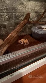 Disponibili due gechi leopardini femmine, una di 2 anni (riproduttiva) e l'altra nata a settembre, entrambe vengono cedute con i loro terrari. Quello più grande presente in foto misura 120x45x45 l'altro invece è da 50 cm in vetro. Entrambi completi di arredo, tappetini riscaldanti e tutto l'occorrente per l'allevamento. Cedo i miei rettili solo per cambio appartamento e non posso portarmele con me