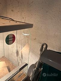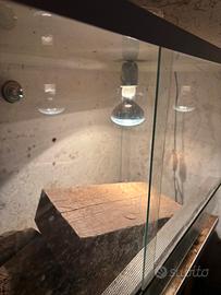 Vendo terrario con pogona di quasi 50cm unica pecca dal terrario rotura nella parte sopra come in foto, accessori completo di tutto prezzo simbolico di 80€