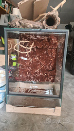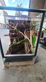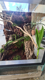 Terrario geco crestato completo, con piante, fibra di cocco, corteccia e legni