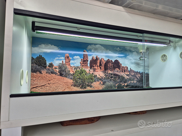 Cedo terrari con sfondo e con lampada arcadia lunga 90 cm e portalampada per la spot misure lunghezza 1 metro profondità 50 altezza 40 per info 3284328044