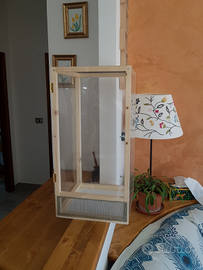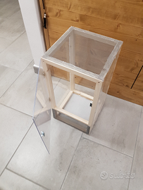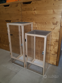Le teche sono realizzate con struttura in legno e rivestite in laminato trasparente. Parte frontale e superiore in zanzariera, per garantire una corretta areazione.