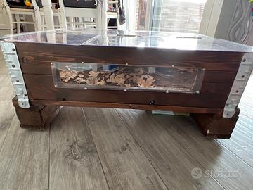 Terriera con accesso da sopra accessibile in 3 parti , più parte a vista frontale, si muove con ruote per eventuali spostamenti. Tutta coibentata e isolata con sugherò