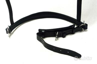 Mentoniera scorrevole per assicurare che l'imbottitura rimanga sempre centrale, con chiusura del capezzino in stile dressage.