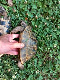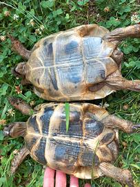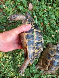 Trio composto da un maschio e due femmine di testudo Graeca ibera del 2015 2016. Animali in crescita che ora pesano oltre 1,3 kg il maschio e circa 2 kg le femmine. Entrambe le femmine sono sempre state separate dai maschi. Certificato Cites fonte C rilasciato dal Nucleo CITES di Verona. Animali non cedibili separatamente ma solo in gruppo. Tartaruga terrestre, terra.
