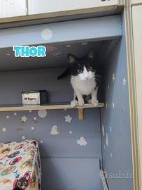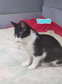 Ciao a tutti a-mici io mi chiamo Thor e sono un micino bianconero. Sì, lo so: nome da tuono, martello e fulmini.. Ma guardami bene... io sono grande quanto una scarpa e il mio ruggito fa più "miao" che "BOOM". Mi hanno trovato solo soletto, in un posto freddo, senza mamma e senza fratellini. In quel momento non mi sentivo proprio un dio del tuono... più un gattino piagnucoloso. Poi sono arrivati i volontari che mi hanno portato al sicuro. Non piove più sulla mia testa, e la mia pancia non brontola più per la fame. Vedo tanti volti amici che mi guardano con affetto e ogni volta penso: "E se fosse lei? O lui? La mia famiglia?" Non chiedo un castello ad Asgard (anche perché non so dove sia). Mi basterebbe un divano su cui addormentarmi, una finestra da cui guardare il mondo, e qualcuno che mi chiami per nome. Non ho il martello, ma ho un cuore che fa un gran rumore. Adottami! Thor verrà affidato sverminato e vaccinato. No giardini né campagne. Info adozioni 3385701355 o 347 555 4515 o 3483261243