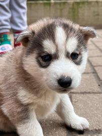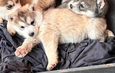 È un incrocio tra husky e lupa cecoslovacca entrambi cresciuti in casa e abituati a stare con le persone, infatti il cucciolo sta seguendo le orme dei genitori.
